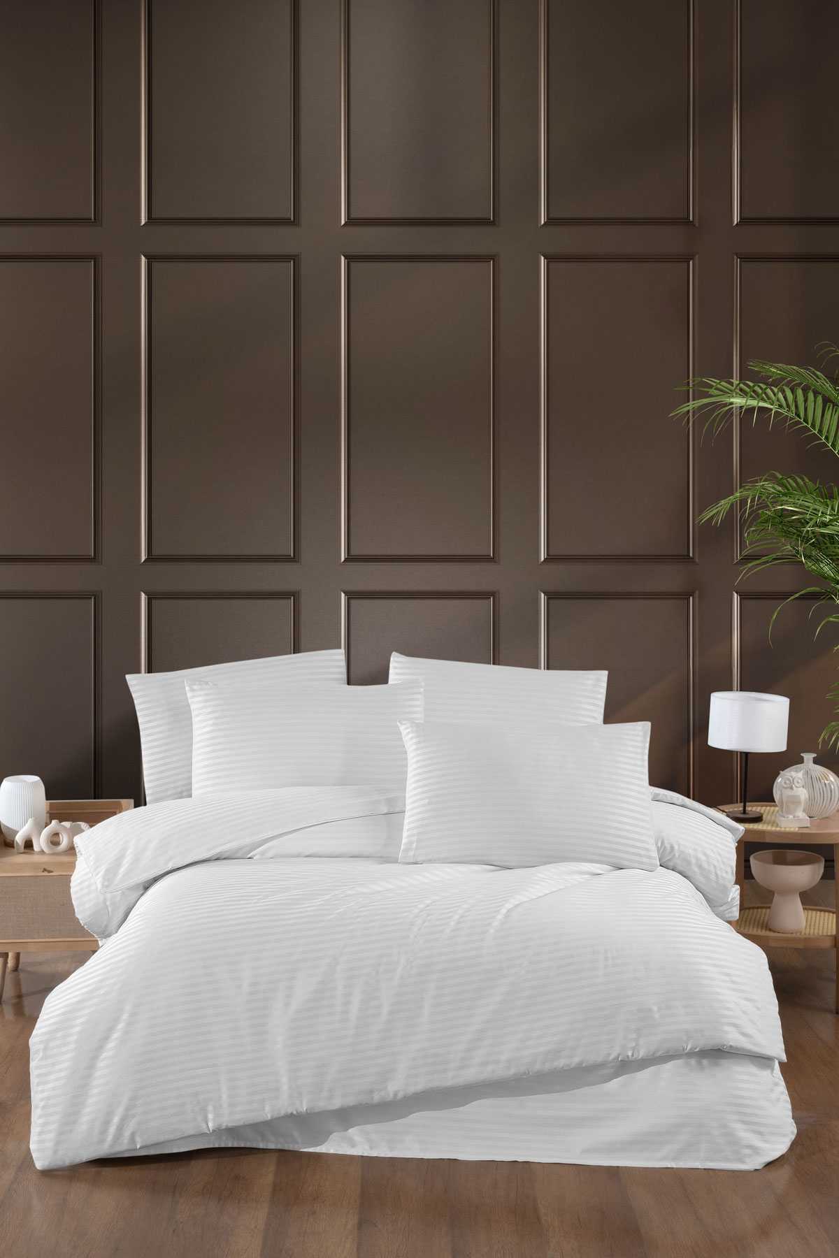 Şık ve modern tasarımıyla yatak odanıza zarif bir dokunuş katan Stripe Saten Line Nevresim Takımı, yüksek kaliteli saten kumaşıyla yumuşacık bir uyku deneyimi sunar. Çizgili desen dokusu, hem modern hem de klasik dekorasyon stillerine uyum sağlar. Dayanıklı yapısı sayesinde uzun süre kullanım imkanı sunarken, nefes alabilen kumaşı ile dört mevsim kullanım için uygundur.